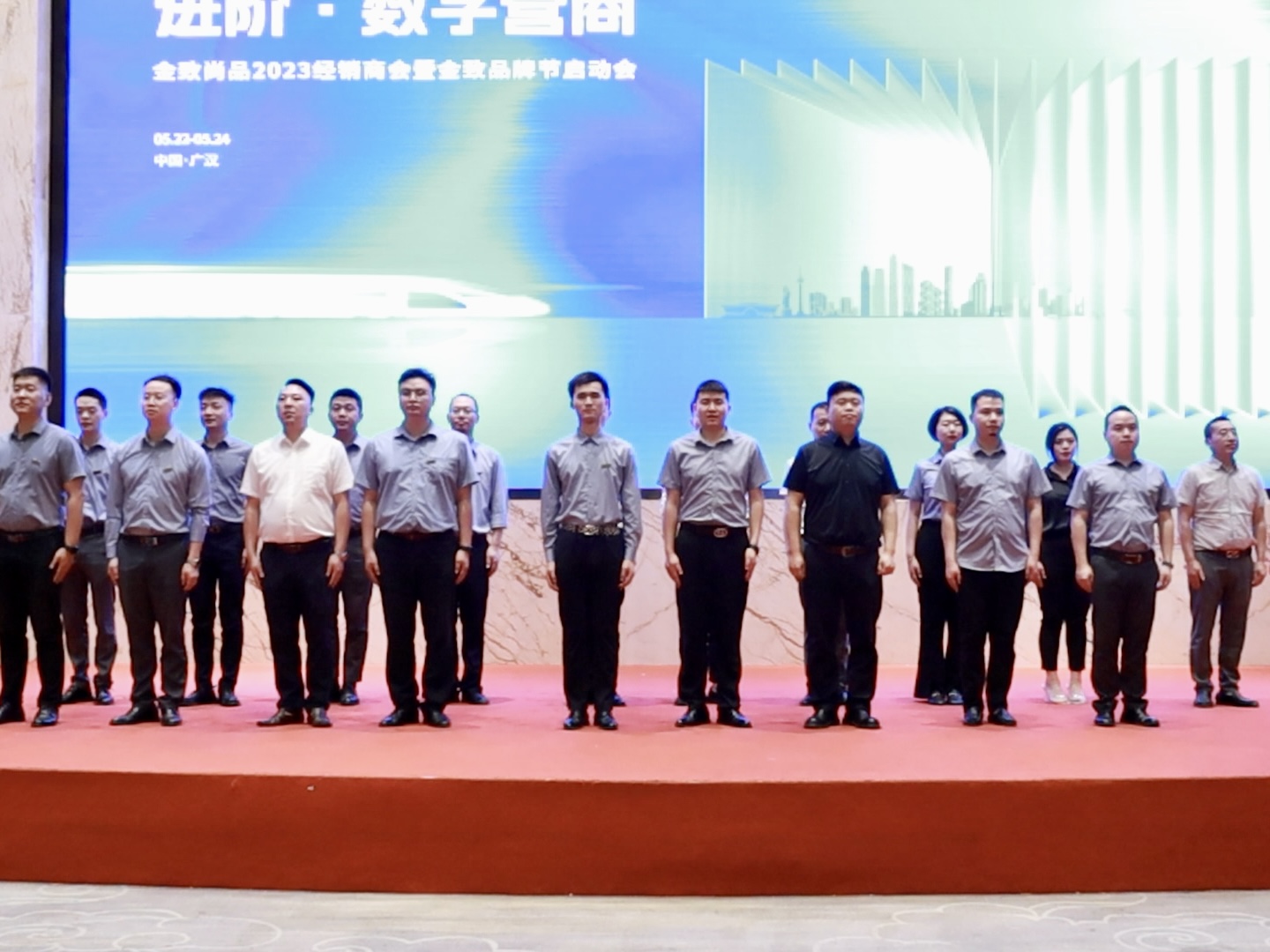 随即,金致尚品门窗营销中心团队集体登台亮相,激昂饱满的自我介绍,散发着专属于金致人的自信与责任。